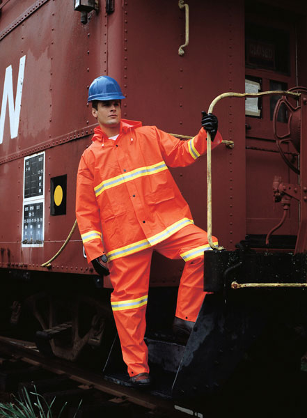 • .35 mm PVC on Polyester Broadloom 3-Piece Rain Suit with 3M Scotchlite Reflective Tape